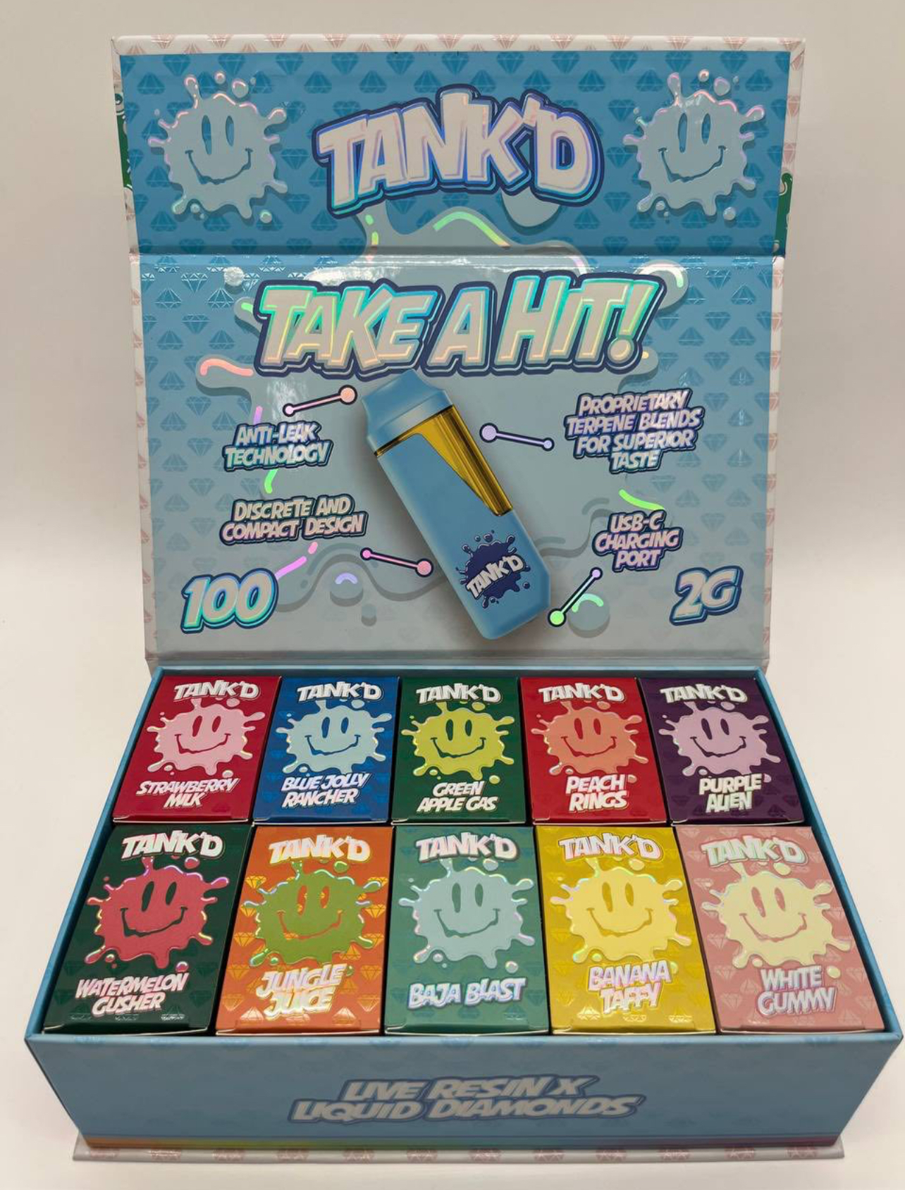 Experience the ultimate vaping experience with TANK’D 2G Disposable – Live Resin x Liquid Diamonds. Crafted for flavor and potency, this premium disposable vape combines high-quality live resin with Liquid Diamonds for an unmatched, smooth, and potent hit. Perfect for on-the-go use, the sleek and discreet design ensures convenience without compromising quality.